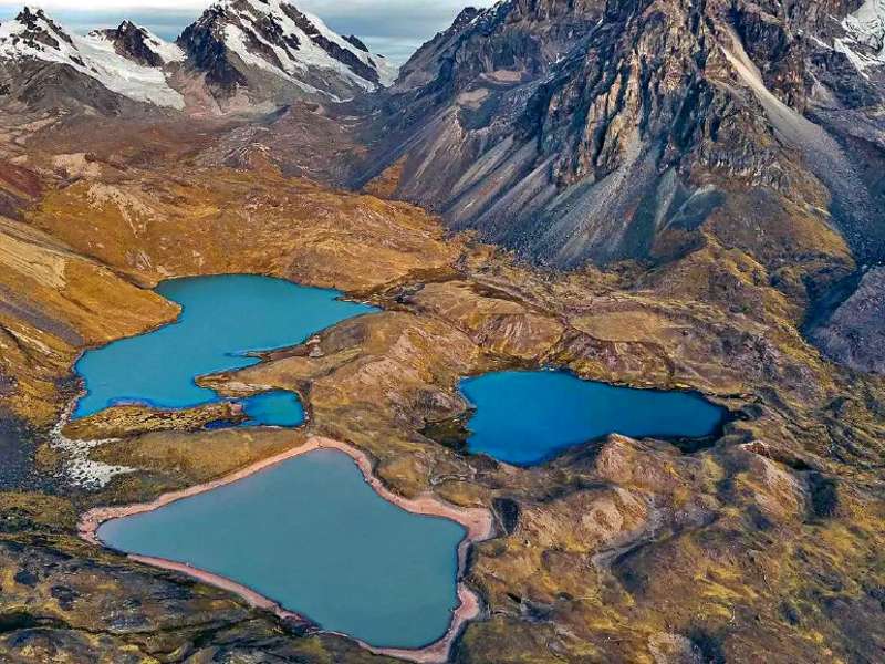 Las Siete Lagunas del Ausangate son un conjunto de lagunas de origen glaciar que se encuentran en la cordillera del Vilcanota, cerca del nevado Ausangate a una altura promedio de 4450 msnm en la región del Cusco. Estas lagunas son reconocidas por su belleza escénica y por su importancia ecológica y cultural para las comunidades locales. Las tonalidades que tienen estas lagunas van desde los colores turquesa, roja, cristalinas, esto debido a la presencia de sedimentos y minerales que le otorgan esas tonalidades. Sin dejar de lado el impresionante telón de fondo con picos nevados, imponentes montañas, vistas panorámicas increíbles. Es un lugar ideal para disfrutar de la serenidad y la majestuosidad de los Andes peruanos.